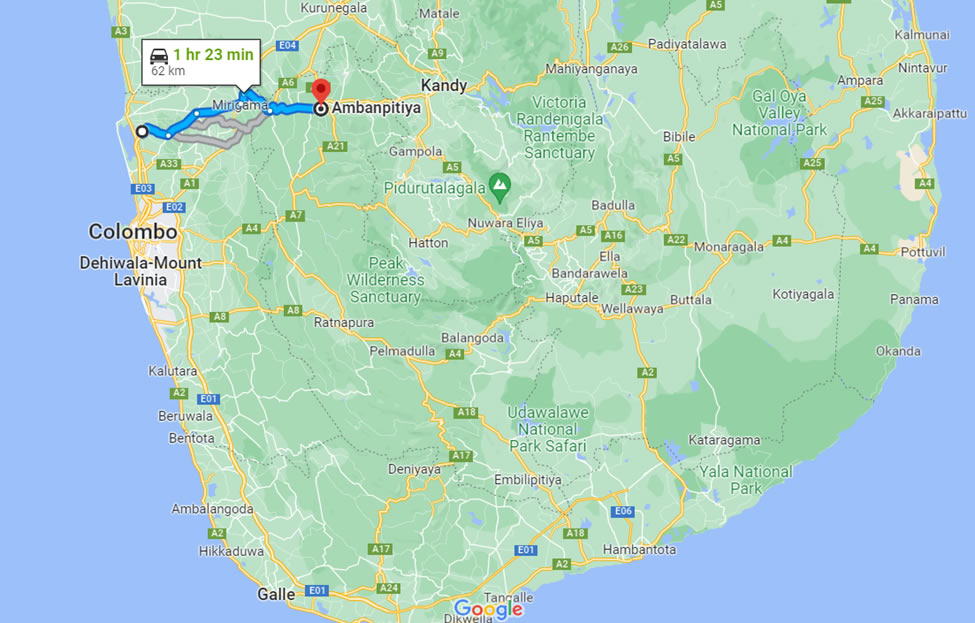A comfortable mini-bus, van or car will be arranged for airport pick-up and drop-off. The type of vehicle will be dependent on the number of persons in the group. The journey with a distance of 62 Km by road from the airport to the Seth Siri Arana would take approximately 1 Hour 30 Minutes.